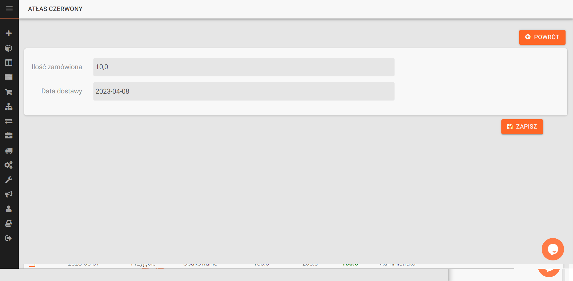 W magazynie można odnotować ilość zamówionego surowca u dostawcy, dzięki czemu system będzie w stanie pokazać informację na temat zarezerwowanych ilości materiałów, które zostały omówione powyżej.