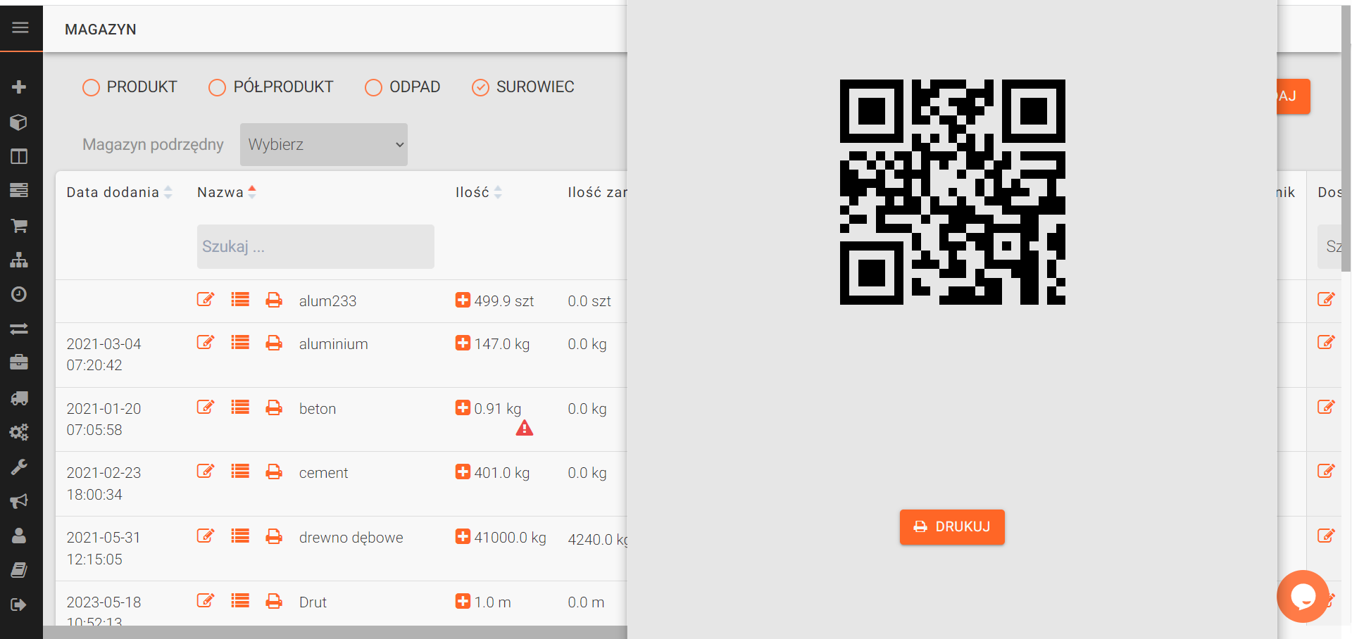 Drukowanie etykiet dotyczących określonego surowca pozwala na bardzo łatwe oznaczenie oraz weryfikację surowca poprzez przypisanie mu konkretnego kodu QR. Etykiety z kodem QR pomagają minimalizować błędy, umożliwiając łatwe i szybkie zidentyfikowanie surowca oraz jego właściwości. Dzięki temu zmniejsza się ryzyko popełnienia błędów w procesie produkcyjnym lub magazynowym.