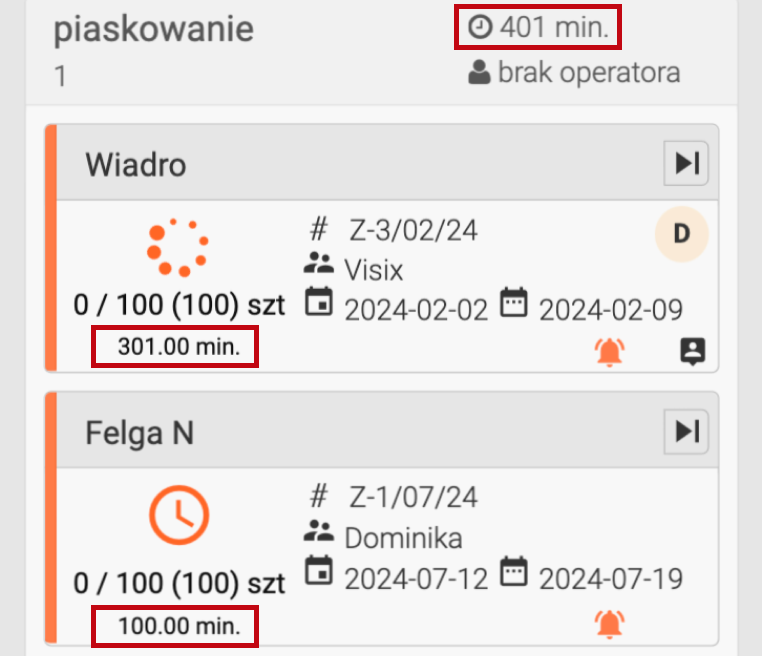 Obłożenie czasowe pracy maszyny dostarcza menedżerom kluczowej informacji na temat czasu potrzebnego do realizacji zadań na danym stanowisku. Przedstawia zarówno czas wymagany na wykonanie pojedynczego zadania, jak i sumę czasów poszczególnych zleceń. Dzięki tej funkcji menedżer może precyzyjnie oszacować czas zakończenia działań na danym stanowisku.